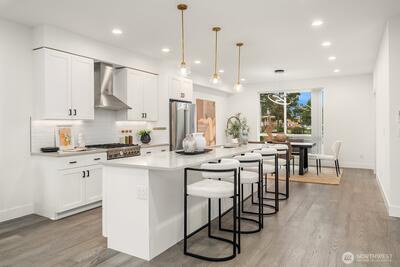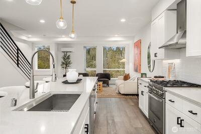Low HOA, move-in ready luxury townhome at Hiatt Park. This 3 bed, 3.5 bath home features a bright open-concept floor plan designed for modern living and entertaining. High ceilings and large windows provide abundant natural light throughout. The chef’s kitchen showcases a grand-sized island, white quartz countertops, premium Italian appliances, and a spacious walk-in pantry. Two primary suites offer large walk-in closets and luxury finishes, including custom lighting and tile shower surrounds. Flexible third bedroom or office ideal for remote work or guest. On-demand tankless water heater, EV charging ready, and double car garage. Conveniently located in the heart of Kenmore near the Burke-Gilman Trail, Lake Washington, shops, dining, everyday amenities, and within the highly sought-after Northshore School District.
