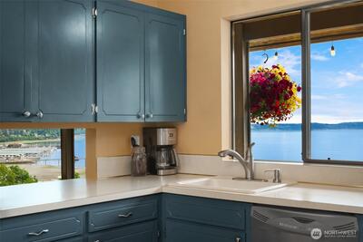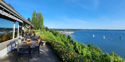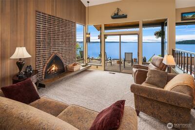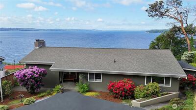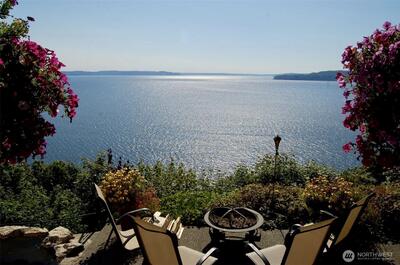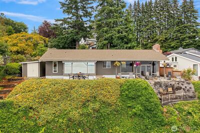 This exceptional mid-century, single-level beauty presents a rare opportunity to own an unparalleled expansive view property in South Puget Sound. Perfectly positioned in a private serene setting, this beautifully maintained 2-bedroom 2-bath rambler showcases unobstructed 180 degree vistas which includes Mount Rainier, partial views of the Olympic Mountain Range, Vashon Island, Point Defiance, Commencement Bay & Dalco Passage. WOW! The coveted southwest exposure captures the ever-changing shimmer of our marine waters and the big sky. Gracious windows invite the natural beauty indoors, filling the living spaces with light and framing the breathtaking surroundings. A unique mid-century brick & metal fireplace with matching custom designed hanging light fixture adds to this marvelous vintage vibe. Priceless clear cedar walls & ceiling anchors the living room, creating warmth and charm. The primary suite offers a peaceful retreat. Open kitchen to family room keeps everyone in the loop & f