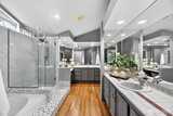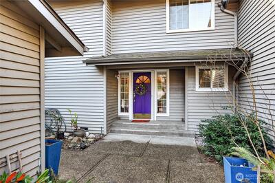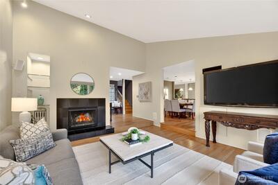 Elegant & impeccably maintained townhome nestled within sought-after Pembrook Meadows community in Bellevue’s desirable Newport Hills. Tucked away on a quiet cul-de-sac & surrounded by beautifully maintained grounds, this residence offers one of the community’s largest & most desirable floorplans with 1,860 SF of thoughtfully designed living space.The home welcomes you w/warm hardwood floors & a gracious sunken living room centered around a classic fireplace & framed by expansive windows that fill the space w/natural light. The beautifully updated chef’s kitchen features stainless appliances, modern cabinetry & generous workspace, creating a sophisticated setting for everyday living & entertaining. The kitchen flows seamlessly to the dining area & comfortable family room, while two sets of French doors open to a private patio & peaceful yard surrounded by mature landscaping—ideal for outdoor dining or relaxing evenings. Upstairs, the spacious primary suite offers vaulted ceilin