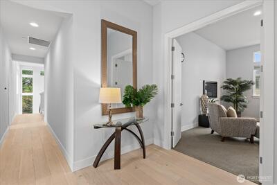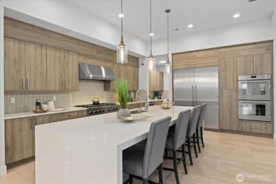 Refined. Rare. Ready. Skip the wait and the "new build" headaches. Pristine, pre-inspected, and meticulously curated, this Kirkland residence offers a flawless transition for the discerning buyer. Beyond the striking modern curb appeal and manicured turf grounds lies a sanctuary of rare caliber, upgraded beyond builder standards to deliver the pinnacle of Eastside living. The heart of the home is a culinary masterpiece—a symphony of Thermador steel featuring a 48” gas range, double ovens, a 60” integrated refrigerator, wine chiller, and high-end kitchen water filtration.The floor plan flows effortlessly into the great room, where vanishing bifold doors dissolve the boundary between indoors and out. Step onto your private, covered terrace with Infratech heating, designed for year-round entertaining amidst a fully fenced yard with premium turf, architectural pavers, and designer accent lighting. Retreat to a primary suite that is a masterclass in serenity, boasting vaulted ceilings