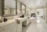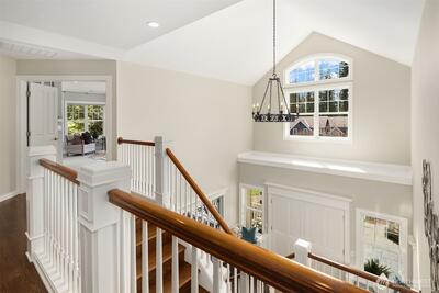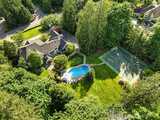 Timeless elegance awaits at Blakely Woods, set on a pristine 1.5-acre estate offering exceptional privacy and beautifully manicured grounds. This remarkable property features resort-style amenities including a sparkling in-ground pool, sport court, putting green, and expansive outdoor spaces designed for both relaxation and recreation. From the moment you enter, the home showcases impeccable craftsmanship and character. A dramatic clerestory entry welcomes you into interiors defined by rich hardwood flooring and extensive use of Calcutta Gold marble throughout. The gourmet kitchen is equipped with a premium Wolf range, an inviting eating nook, and flows seamlessly into a stunning great room highlighted by a floor-to-ceiling fireplace. The main level also includes a private den, formal living and dining rooms, a ¾ bath, and an additional powder room—perfect for both everyday living and entertaining. Upstairs, the luxurious primary suite offers a serene retreat with fireside seating,