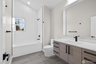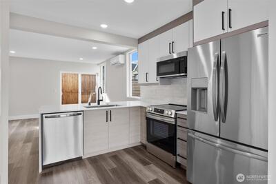Live in one of Seattle’s most beloved neighborhoods in this stylish standalone home in Wallingford. Designed with modern simplicity in mind, the open main floor flows easily from the living area into a polished kitchen featuring quartz countertops, stainless steel appliances, and custom cabinetry—perfect for everyday living or hosting friends before heading out to the neighborhood. Natural light fills the living space, creating a warm, comfortable place to relax. Upstairs, two generously sized bedrooms with vaulted ceilings feel bright and airy, complemented by a beautifully finished bathroom with refined tile work and contemporary fixtures. Step outside and enjoy everything Wallingford is known for—local cafés, favorite neighborhood restaurants, boutique shops, and nearby parks just minutes away. With the added convenience of your own dedicated off-street parking space, this home offers a rare mix of modern design, walkable living, and everyday practicality in the heart of the