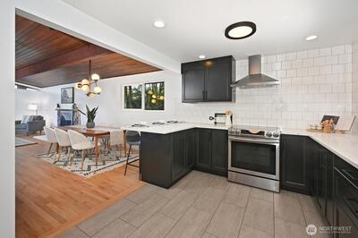 Welcome home to this meticulously cared-for, mid-century modern gem, completely renovated from top to bottom. Nestled among towering evergreens on an oversized 9,760 SF lot, this ~2,500 SF stunner is a rare find under $1 million. The showstopping kitchen features a built-in coffee bar, high-end stainless steel appliances, and a seamless open-concept flow into the living and dining areas — made for entertaining and everyday living alike. Cozy up beside one of two wood-burning fireplaces in this one-of-a-kind home, offering ultimate privacy at the end of a secluded street. When spring arrives, step outside into a landscape transformed by over $100,000 in investment: beautifully terraced grounds with a new paver patio, and full drip irrigation keeping everything lush year-round. An indoor playset with slide and monkey bars, plus EV charging complete the picture of a home built for modern life. All of this just steps from the planned Pinehurst Light Rail Station. Don't miss your chance