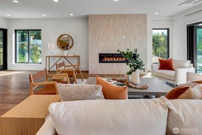 A rare opportunity to make a deal on Mercer Island's coveted north end and First Hill neighborhood. Bring us an offer and this newly built residence by RKK Construction will have you home by spring! A home with a custom and compelling design offers a floor plan that captures the sweeping west facing views of the Olympic Mountains, Lake Washington, Seattle skyline and Seward Park. Dramatic walls of glass frame unforgettable sunsets. The open and stunning great room with high ceilings and hardwood floors is drenched in light. It opens seamlessly to the view deck through a pair of "Nana-Style" folding doors. This creates true indoor/outdoor living. The deck offers heaters, speakers and gas stub for the BBQ. The chef’s kitchen was designed for serious cooking and lively entertaining, featuring a massive slab quartz island that seats eight and an oversized under-mount sink, perfect for prep or filling with ice and beverages. Two dishwashers, two sinks, double ovens and 2 refrigerated draw