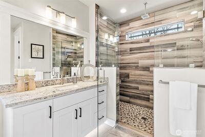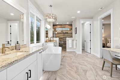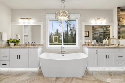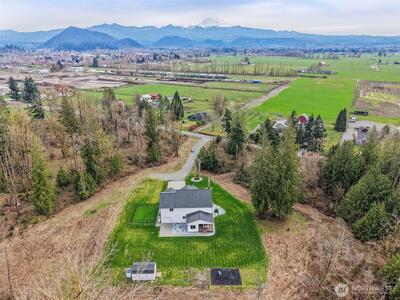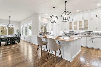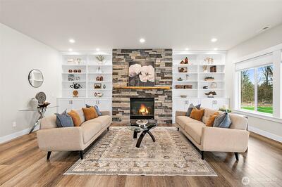 Custom built in 2019, 3,820SF, 4-bed, 2.5 bath home, on a serene forested 19.55 AC parcel w/ Mt. Rainier views! Perfectly appointed kitchen w/ granite counters, large island, double ovens, 64" fridge/freezer combo, tons of custom cabinet storage, massive walk-in pantry & adjacent dining area big enough for 12-person seating (table & 10 chairs included). Open concept living room w/ gas fireplace insert, live edge mantle, stone surround & wall of built-ins. Huge primary bed w/ luxurious private bath that features, 3 vanities, tile floors, 2-head + rain head tile shower, free standing soaking tub, 140+SF walk in closet & walk in linen closet. Laundry room w/ cabinet storage, granite counter, mud sink + additional linen/storage. 10' ceilings on the main w/ 9'/vaulted ceilings up. 21' x 19' bonus room up w/ closet storage. Whole home water filtration system, built in vac system, tankless gas HW, & built-in speakers w/volume controls. Beautiful entry w/stamped concrete covered patio & ornate