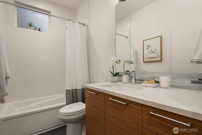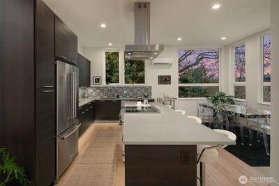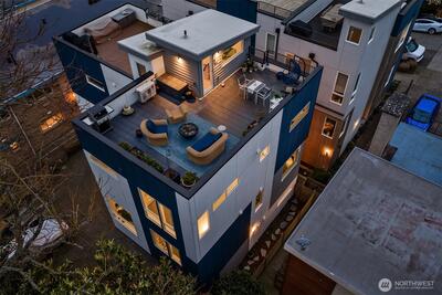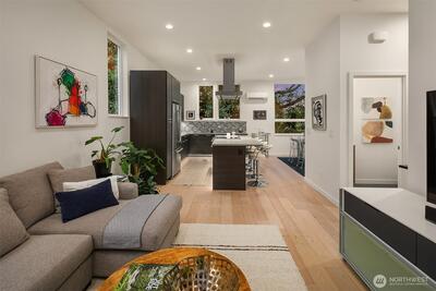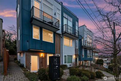 Large, stylish, sunlit townhome on the south end of Magnolia; this certified Built Green home has everything that you are looking for. Spacious en-suite primary bedroom with walk-in closet & a spa bath plus two additional bedrooms and one and a half baths. An open main floor designed for entertaining or quiet evenings after a hard day. Cooks’ kitchen with abundant custom cabinetry topped by leathered quartz countertops, stainless steel appliances, gas range, and room to work. High ceilings and walls of glass provide generous sunlight throughout the home. Amazing roof top deck with water, power & gas for BBQ, room to spread out and Seattle, Sound, and Mt. Rainier views. Attached, private 1 car garage. Mini-splits provide heat & A/C. Easy access to work and play with Fremont, Wallingford, Queen Anne, and Downtown Seattle mere minutes away… and you can even get in a quick 9 holes or hit a bucket of balls at the Interbay Golf Club & Center. No HOA Dues & Inspected for your convenience.