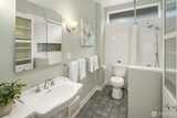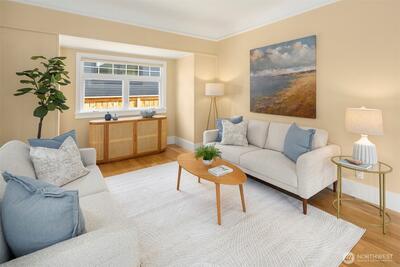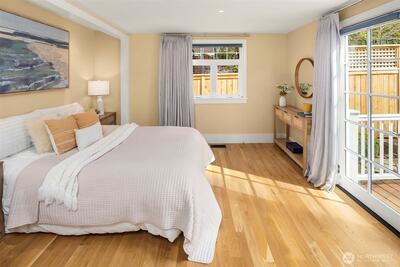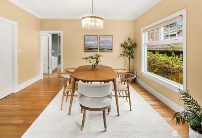 Phinney Ridge charmer meets award-winning transformation. This 1908 four-bedroom is the recipient of a 2024 Remodeling Excellence (REX) Award, earned through a $650k+ whole-house remodel by Jackson Design/Build — featured in 425 Magazine. Light-filled rooms flow from a beautifully reimagined entryway through the living and dining rooms, into a completely new kitchen and stunning remodeled bath. White oak hardwood floors grace the entire main level and stairwell. Custom entryway cabinetry, curated light fixtures, and thoughtful tile selections throughout — contemporary finishes that honor the home's early 1900s soul without moving a single wall. Lower bedrooms feature brand-new carpet. Freshly painted exterior. Entertain from two distinct outdoor spaces: a generous front deck with sweeping neighborhood views, and a private flagstone patio accessed directly off the primary bedroom — fully fenced and beautifully landscaped. The systems match the finishes: new electrical panel with u