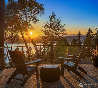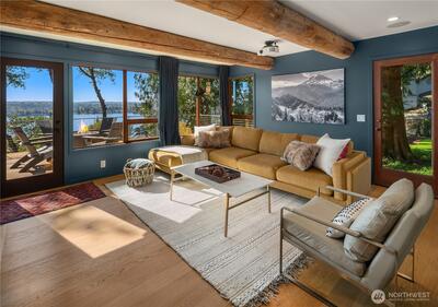 This truly feels like a San Juan Islands vacation home. Except no orcas frolic in the glittering water below, and the island is Mercer, a safe haven with legendary schools and speedy access to all points Seattle and Eastside. At the end of a hidden lane, a discreet facade greets you with exquisite privacy. But walk in the door and the world blows open. Dramatic expanses of glass drink in glittering lake and Olympics views. The forest below is yours, providing a brilliant buffer together with the rare ability to control your own views. Standing here, bathed in nature and light, you can downshift into holiday mode. Architect Carole Klees designed this iconic shingled home for her own family in the NW Modern vernacular of the late 1970s and early 1980s. Fans of the style will recognize its hallmarks. She emphasized soaring window walls to maximize light, vaulted, peaked ceilings, an open, airy floor plan, great indoor-outdoor flow and abundant natural materials. The current owner has made