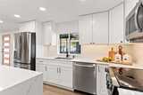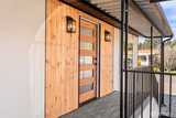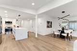 One of the finest homes in the sought-after 55+ Walnut Grove community, this fully remodeled 3-bedroom, 2-bath residence offers exceptional style and comfort throughout. Thoughtfully updated inside and out, featuring a new roof, new windows, new furnace with heat pump, and beautiful LVP flooring. The stunning chef’s kitchen showcases new custom cabinetry, waterfall quartz countertops, full-height quartz backsplash, under-cabinet and island lighting, stainless steel appliances, and a sleek slide-in range. Vaulted ceilings elevate the expansive living room, anchored by a striking electric fireplace and seamless flow into the dining area—perfect for entertaining. Enjoy year-round relaxation on the covered front porch with a warm wood accent entry, surrounded by mature landscaping. The spacious layout includes a generous laundry room with direct access to a 3-car carport and a large storage shed. Retreat to the luxurious primary suite featuring a second electric fireplace, oversized wa