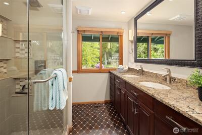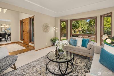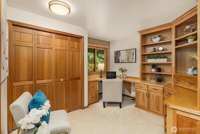 First time on market in 40 years, this lovingly cared-for home is ideally situated on a 9,100 sq ft lot at the end of a quiet cul-de-sac in the highly desirable Woods at Issaquah. The Woods at Issaquah is a neighborhood with a true sense of community sponsoring multiple events throughout the year. The spacious two-story residence offers 2,970 sq feet of well-designed living, featuring 4 bedrooms, 3.5 baths, and a dedicated home office, perfect for today’s lifestyle. Enjoy the heated floors in each of the 3 upstairs baths. Upgraded aluminum-clad wood sash windows throughout add to the feel of luxury. A lovely water feature adorns the custom stone terrace surrounded by dramatic outdoor lighting, perfect for Al Fresco dining. Enjoy abundant parking in addition to a two-car garage, plus the peace of mind of an auxiliary generator and the comfort of central air conditioning and a 96.7 % efficient furnace. The low maintenance gardens and yard are beautiful regardless of season and feature