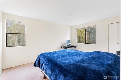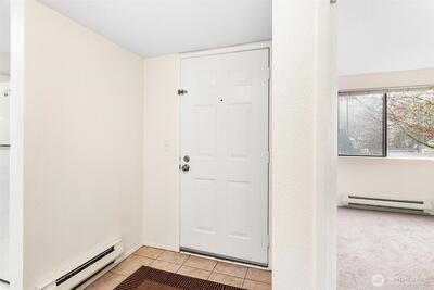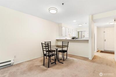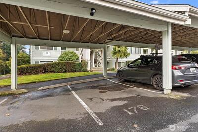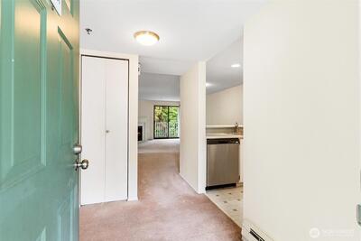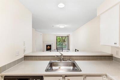 Welcome to this easy living condo offering comfort, convenience, and fantastic community amenities in an ideal location. This bright and inviting home features an open concept living space with a cozy gas fireplace and a private balcony overlooking lush greenery. The home offers two bedrooms including a spacious walk in closet and a conveniently located stacked washer and dryer in the unit. A reserved covered parking space is included along with guest parking. Ideal end unit! Enjoy community amenities including a clubhouse, fitness center, game and rec room, hot tub, and outdoor pool, expanding your living and recreation options. HOA dues cover water, sewer, and garbage for added value and simplicity. Secluded yet conveniently located near parks with walking trails, transit options, the Sounder Train, and the shopping, dining, and entertainment of Kent Station. This is an amazing opportunity to own in an incredible location with no rental cap.