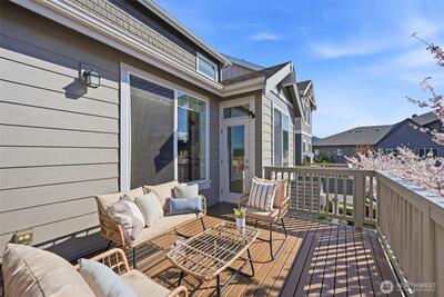 Located just steps to Grand Ridge Plaza—offering shops, restaurants, groceries, coffee, and park & ride—this home in the highly sought-after Issaquah Highlands is perfectly positioned in a tranquil, park-like setting, backing to community open space. Enjoy the convenience of being just a 4-minute drive to Issaquah Highlands’ Central Park, featuring trails, sports courts and fields, and playgrounds. This thoughtfully designed home offers 3 bedrooms, an open office/den upstairs, and 3.25 bathrooms, providing flexibility for today’s lifestyle. Hardwood floors span the entire main level, where an open-concept layout seamlessly connects the chef’s kitchen, dining area, and living room. The kitchen features abundant cabinetry, a breakfast bar, and easy access to a large view deck—capturing sweeping westerly views of the Olympic Mountains and stunning sunset skies—ideal for both relaxing and entertaining. The spacious walk-out daylight basement includes a ¾ bath and of