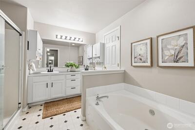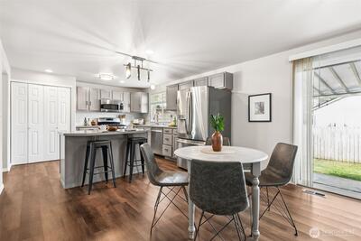 Welcome to your gorgeous new home! Conveniently located in NE Lacey near I-5, this stunning 5 bed, 2.5 bath home offers over 2,600 square feet of thoughtfully designed living space. Situated on a desirable corner lot in a quiet, established neighborhood. The main floor includes a spacious living room with dining space, a large eat-in kitchen and family room, a half bathroom, utility room, and a main floor bedroom. Upstairs, you'll find a gigantic, oversized primary suite with 5 pc bath and walk in closet, as well as 3 additional, large bedrooms, and another full bathroom. Close to shopping, restaurants, schools, JBLM and more! Don't miss this one!