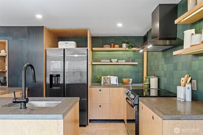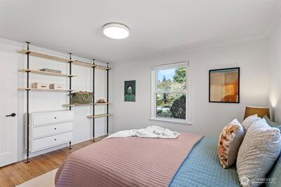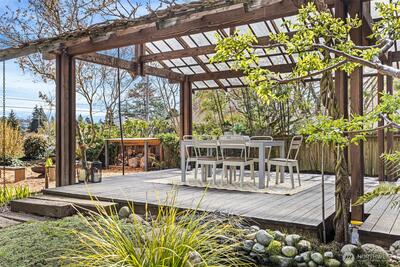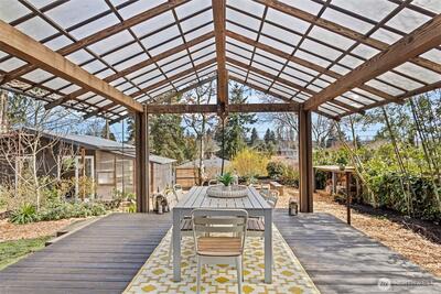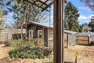 Welcome to your urban oasis nestled in the Genesee neighborhood of West Seattle. This thoughtfully designed home allows you to enjoy tranquil spaces by integrating the interior and exterior with ease and great flow. Open concept chef's kitchen has large counter space with bar seating and beautiful tile work. Custom metal and woodwork shelving and built-ins throughout home provide excellent storage and use of space. Bathroom has large soaking tub and modern tiles. Fresh interior and exterior paint, refinished hardwoods and double pane windows. French doors open to your large covered deck, perfect for entertaining and enjoying year round. Private and lush garden with fruit trees, herb garden and ornamental plantings. Separate studio space provides flexibility as a guest room or home office. Greenhouse with calibrated venting is a gardener's dream. Detached 1 car garage with alley access. Heat pump w/AC for added comfort. Close proximity to WS amenities, parks, schools, and transit. This