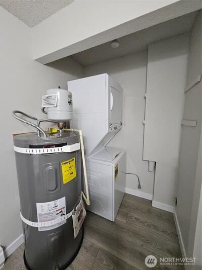 Fantastic updated top floor condo featuring vaulted ceilings, stainless steel appliances, granite countertops, and a cozy wood burning fireplace, perfect for those rainy Washington winters. Enjoy new LVP flooring throughout the entire unit. The private deck offers additional storage and is accessible from both the primary bedroom and the living area. Being a top floor unit means no neighbors above, providing added peace and quiet. Ideally located just minutes from I-405, top rated restaurants, grocery stores, and a variety of shopping options. This home is truly move in ready!