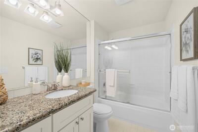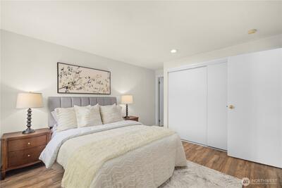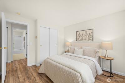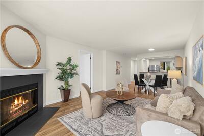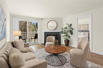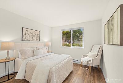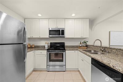 Top-floor two bedroom unit in the desirable Tenth Place condo complex. This central Bellevue location is right next to the bustling Spring District, thoughtfully updated with a clean, modern aesthetic and designed for easy, everyday living. Enjoy abundant amounts of natural light, durable LVP flooring, updated light fixtures, and a new water heater, making this home move-in ready. A spacious utility room with in-unit washer and dryer adds everyday convenience and extra storage. The private balcony overlooks a peaceful greenbelt, creating a quiet retreat in the middle of it all.With no rental cap, this property offers flexibility for both homeowners and investors. HOA dues include water, sewer, garbage, and community-only access to an outdoor swimming pool and sport court. Just minutes from downtown Bellevue, I-405 access, Overlake hospital, and major employers such as Meta within reach. With a range of dining, major shopping center, grocery options, and light rail access, this home