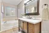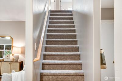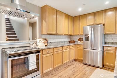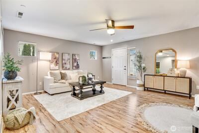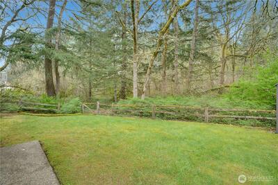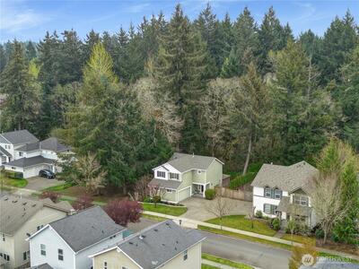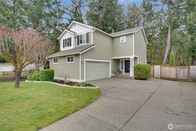 There’s a natural, retreat feel to this NW Landing home—one that comes from its rare placement against 46 acres of protected green space, with additional open land along the eastern border. Tucked away, it's a setting where wooded trails, occasional wildlife visitors, and natural surroundings shape the rhythm of daily life. From the kitchen, living, and dining spaces, windows draw your focus outward—framing layers of green that shift with the seasons. Inside, the home has been thoughtfully renovated with a focus on both function and longevity. The kitchen anchors the main level with solid stone countertops, a chef’s hood, and generous cabinetry, and flows comfortably into spaces designed for both everyday living and easy gathering. Upstairs, the primary suite offers a sense of scale that feels luxurious and is hard to find, paired with peaceful views of Garry oak trees and the natural backdrop beyond. Less than 4 miles from JBLM, the location keeps your commute simple while pre
