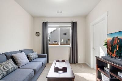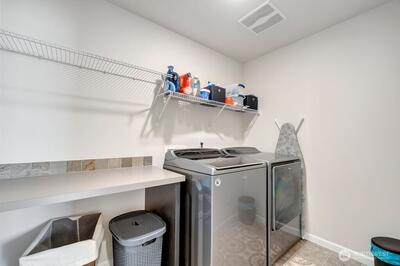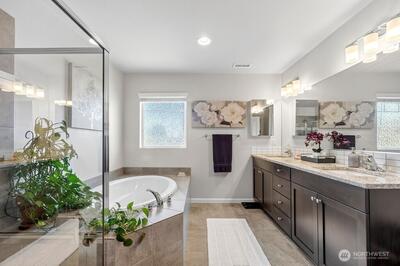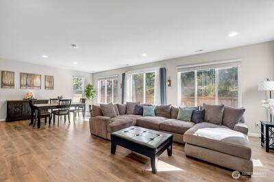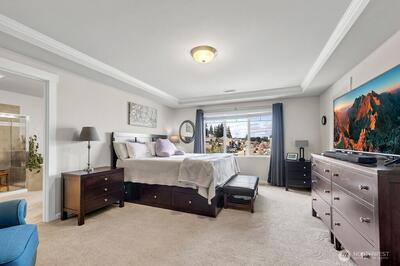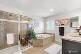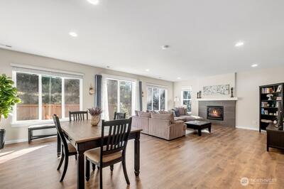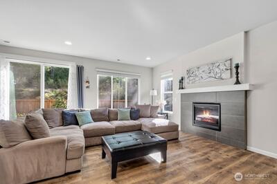 Move-in ready 5-bedroom, 2.75-bath home in Puyallup backing to a private greenbelt with no rear neighbors and ideally positioned on a corner lot next to trail access. This spacious home offers a versatile layout, including a main floor bedroom with walk-in closet and full bath, perfect for guests or multi-generational living.Upstairs, a large loft overlooks the peaceful greenbelt, creating a flexible space for a media room, office, or play area. The expansive primary suite features two walk-in closets, a luxurious 5-piece bath, granite countertops, and a glass-enclosed shower.The kitchen is designed for both everyday living and entertaining with granite countertops, stainless steel appliances, a 5-burner gas stove, and generous counter space. Enjoy year-round comfort with a heat pump and the convenience of a tankless hot water heater for continuous hot water.Step outside to a fully fenced, beautifully landscaped backyard featuring a patio and flagstone pathway—perfect for relaxing or