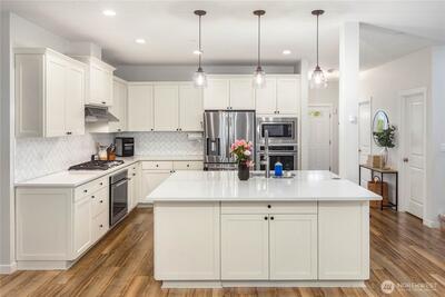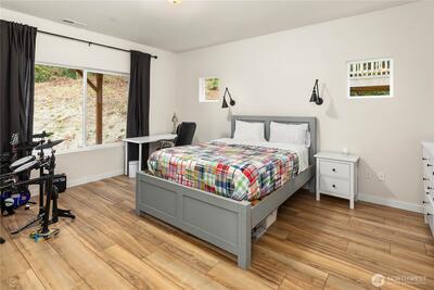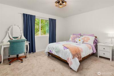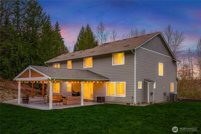 Welcome to your private sanctuary on nearly forty acres of pristine Duvall acreage with exceptional potential for future development. This stunning 2019 built home features five bedrooms, three and a half bathrooms, and dual primary suites, one on the main floor and one on the upper level, offering flexibility for any lifestyle. Surrounded by towering evergreens and mature trees, this 3,190 square foot home delivers authentic Pacific Northwest rural living while remaining conveniently close to downtown Duvall and all the Eastside has to offer. The open concept main floor showcases quality finishes with abundant natural light flowing throughout. A chef's kitchen with white shaker cabinetry, quartz countertops, herringbone tile backsplash, and stainless steel appliances seamlessly connects to the spacious great room featuring a shiplap gas fireplace with warm wood mantle. Step outside to the stunning covered patio with wood-planked ceiling and ceiling fan, perfect for year-round entertai