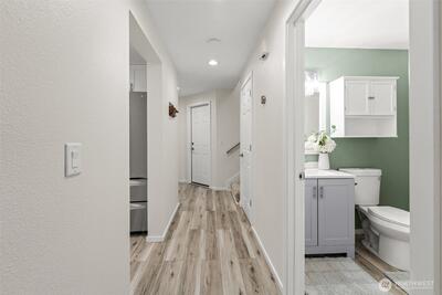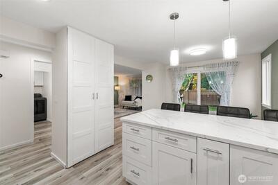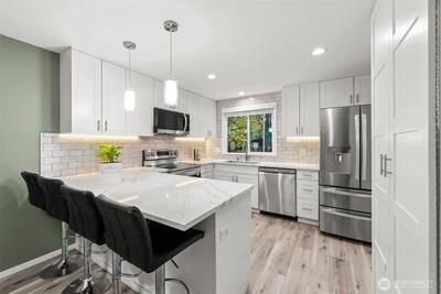 Exclusive chance to own this exquisitely remodeled residence in Kirkland. Crafted w/ enduring quality & design, this home features SS appliances, tall soft-close cabinetry, premium 12 mil LVP flooring, & a Heat&Glo gas FP framed in elegant stone, providing warmth even during outages. Upstairs, a bright staircase w/ skylight, leads to a refined primary suite & two add. bedrooms, all w/ custom-built closets, plus spa-inspired baths fully tiled w/ rain showerheads & a third bedroom showcasing an absolutely stunning accent wall. Flat, fully fenced backyard opens to a serene greenbelt, offering privacy & tranquil PNW sounds. Freshly painted exterior, minutes to Totem Lake Village, parks, major employers, I-405, & within the highly regarded LWSD! ... This home is platted as a single-family residence and conveyed as fee simple ownership, meaning the owner holds full ownership of both the home and the underlying land, unlike many townhome properties where the land is held in common interest.