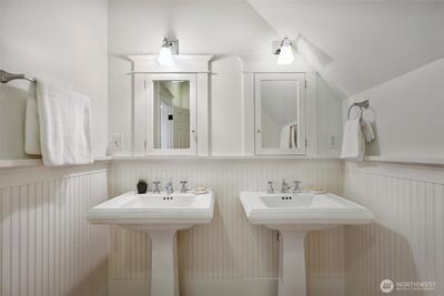 Lower Woodland welcomes you to this beautifully and thoughtfully renovated 1905 home. Natural light fills every corner, highlighting expansive south-facing windows throughout. Fully permitted updates include new electrical and plumbing, a rear extension that adds valuable living space and a charming kitchen nook, and a full home lift that brings the basement ceiling height to nearly 9 feet. The fully renovated basement further enhances the home, offering additional living space complete with two bedrooms, a bathroom, and a dedicated laundry prep area. Recent updates also include refinished red birch hardwood floors (extremely durable), fresh interior and exterior paint, new carpet, updated hardware throughout, and a new garage door motor with an exterior keypad for added everyday convenience. Plenty of parking is available with a two-car garage and an exceptionally long driveway, complemented by two cross-pollinating Asian pear trees. Fully fenced backyard perfect for gardening space a