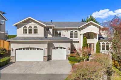 Meydenbauer — Bellevue’s most coveted address — combines stunning lake views, effortless walkability, and sophisticated living in one unbeatable package. Step inside to the gem you've been waiting for. A dramatic curved wrought-iron staircase welcomes you into a two-story foyer, setting the stage for airy, open living spaces designed for today’s lifestyle. Expansive windows and soaring ceilings bathe the home with natural light, connecting the living and dining areas to a sleek chef’s kitchen featuring stone counters, designer cabinetry, and top-tier stainless appliances. French doors open to a private covered patio with a fireplace and built-in BBQ — perfect for relaxed nights in or easy entertaining. Upstairs, the primary suite captures iconic views of Lake Washington and Bellevue’s skyline, with a cozy fireplace, walk-in closet, spa-style bath, and private deck. Three additional bedrooms share the upper level, while the daylight lower level highlights flexible space