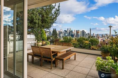 Thoughtfully renovated under the direction of architect Laurie Carron & remodeled by SBI Construction, the 3 bed, 3.25 bath home pairs refined design w/ highly functional living. Expansive windows frame dramatic city vistas & fill the interiors w/ natural light. The main level is designed for both entertaining & daily living, featuring a chef’s kitchen w/ Sub-Zero fridge & Viking range, formal dining & a living room w/ a hidden tv that opens to an amazing entertainer’s deck w/ built-in pizza oven, grill, gas fire pit (under tabletop) & panoramic city views. Upstairs, the primary suite offers a private retreat w/ walk-in closet, spa-like bath, a private deck w/ hot tub & home office loft. 2 additional beds, laundry & a full bath complete this level. The lower level provides flexibility w/ a rec room or 4th bed (just add doors), full bath, gym/hobby space & 2nd laundry center. Outdoor spaces in/c landscaped grounds & 2 car garage w/ EV charging, storage, workspace & addition