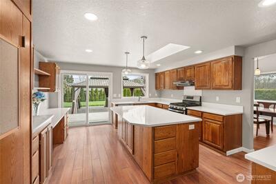 Welcome Home!! The home sits on a large corner, well maintained and ready for entertaining. Inside the home you have vaulted ceilings, updated flooring, new kitchen countertops and refrigerator. The home is equipped with a heat pump providing heat and A/C. There is plenty of storage space, a large utility room right off the primary bedroom, gas available for a outside fireplace, hot water at the back deck and a 240 volt EV charger installed plus a quiet neighborhood with a park just down the road. Located close the I5, shopping, and restaurants.