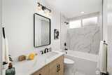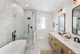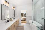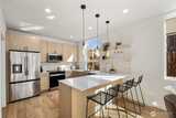 Experience modern elegance in this stunning new construction home! This thoughtfully designed 3-level home blends style and functionality with striking contemporary architecture. Enjoy abundant natural light and high-end finishes throughout. The chef’s kitchen features stainless steel appliances, sleek white countertops with bar seating, a designer tile backsplash, and custom built-in shelving; perfect for both everyday living and entertaining. A convenient utility room offers space for washer and dryer, includes a utility sink. Additional mud room off the kitchen provides extra storage and organization. Retreat to the luxurious primary suite with a private patio and spacious walk-in closet. Ensuite primary bath features barn door entry to a modern spa inspired 5-piece bath with heated tile floors and high ceilings. Stylish, functional and beautifully crafted with built-in heating and A/C for year-round comfort and a welcoming front yard, this home truly has it all. Private off-stre