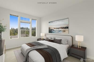 Unique top-floor corner residence with panoramic Cascade Mountain views in Bellevue’s desirable Lakemont neighborhood. Natural light fills every room, creating a bright and inviting living space. Recent community improvements include completed building envelope repairs funded through HOA reserves, along with a newer roof, updated piping, and a new hot water tank, offering buyers added confidence with no special assessment. The home features fresh interior paint, a gas fireplace, newer carpet and baseboard trim, soaring 10-foot ceilings in the living and dining areas and primary suite, and an attached garage. The community is pet-friendly with no rental cap, offering exceptional flexibility for both homeowners and investors. A well-managed HOA keeps monthly dues lower than many comparable Eastside condo communities. Located in a highly desirable area with excellent schools, including Cougar Ridge Elementary, Cougar Mountain Middle School, and Issaquah High School, along wi