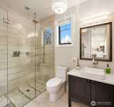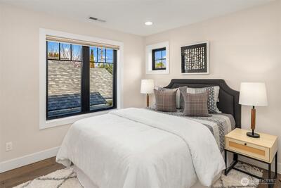 WEST OF MARKET / LAKE VIEW / CONTEMPORARY - This 2017 bespoke luxury lake-view home offers a preferred floor plan, voluminous contemporary architecture and glamorous curated finishes. Ideal for entertaining, this light-filled home offers an open floor plan with expansive windows, extended height ceilings, 8' doors and wide-plank hardwood floors throughout. The designer kitchen features custom cabinetry, lighting upgrades, integrated outlets, Wolf range, pantry and quartz island w/ seating. Great room features living area w/ gas fireplace and dining area w/ French doors to patio w/ gas. Off the patio, spiral stairs ascend to the expansive lake-view rooftop deck w/ gas. Inside, mud room w/ beverage fridge; laundry; bedroom; and, 3/4 bath complete the main level. Upstairs, the spectacular primary retreat features a bright sitting area, French doors to its own lake-view deck, walk-in closet w/ custom upgrades and indulgent spa-like bath. Two more bedrooms and full hall bath complete the up