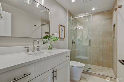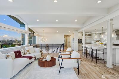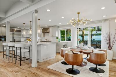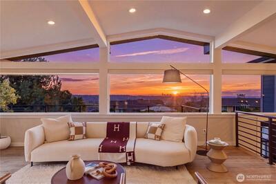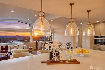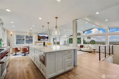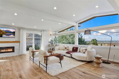 A torn-down. A Studs-out Rebuild. Fully reimagined in Somerset, this opportunity delivers the quality, efficiency, and livability of a brand-new home, capturing panoramic views of Lake Washington, the Olympic and Cascade Mountains, and the Seattle/Bellevue skyline. Vaulted ceilings open to a light-filled living space with a cozy fireplace and sweeping views from every window. The chef’s kitchen features top-tier appliances, a large island with abundant storage, and a sunlit dining area that flows to two expansive decks. All four bedrooms include their own showers, with two designed as ensuites. The lower level offers flexible space for recreation, guests, or multi-generational living. No carpet. An oversized two-car garage includes a large storage room. Seamless indoor-outdoor living is surrounded by nature, peace, and enduring views. Top-rated schools and easy access to I-90 complete this exceptional home. This home has all Somerset is proud to present.