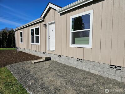 Brand New, fresh and clean and will be ready to move into by the middle of April. 3 Bdrm/2 bath home in an open country setting. This home is in a tiny little privately operated park off of Sargent Road near Scatter creek. Only 6 units total will ever be here. This is a 55 and older park and all nicely kept homes, all good tenants. Across the driveway from an open space farm area with views to Mt. Rainier. This lot also borders a huge lawn area dedicated to the water system. Lots of space for a garden or lawn games. Porches are under construction. Space rent is $750 and this includes water/sewer/garbage. Just a few minutes to I-5 access at Exit 88. Quick commute to Olympia. Less than 15 minutes to the gaming and restaurants of the Lucky Eagle Casino. If you want an economical country home in a very pleasant setting this might be worth a look.