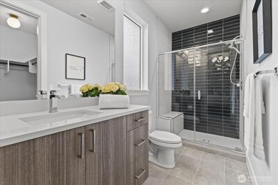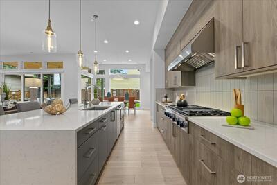 Refined. Rare. Ready. Skip the wait and the "new build" headaches. Pristine, pre-inspected, and meticulously curated, this Kirkland residence offers a flawless transition for the discerning buyer. Beyond the striking modern curb appeal and manicured turf grounds lies a sanctuary of rare caliber, upgraded beyond builder standards to deliver the pinnacle of Eastside living. The heart of the home is a culinary masterpiece—a symphony of Thermador steel featuring a 48” gas range, double ovens, a 60” integrated refrigerator, wine chiller, and high-end kitchen water filtration.The floor plan flows effortlessly into the great room, where vanishing bifold doors dissolve the boundary between indoors and out. Step onto your private, covered terrace with Infratech heating, designed for year-round entertaining amidst a fully fenced yard with premium turf, architectural pavers, and designer accent lighting. Retreat to a primary suite that is a masterclass in serenity, boasting vaulted ceilings