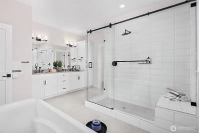 MODEL HOME Now Selling!!! - Gorgeous community near the heart of Enumclaw. All one level living with 9-foot ceilings, luxurious primary suite, open concept, island kitchen & ample spaces. This 2267 sft plan is 3 bdrm, 2 bath, 3-CAR garage, perfect for storage or flex space. Open chef's kitchen with large island, gas cooktop & pantry. Primary suite with walk-in closet, 5-piece bath including shower with mudset pan, tile surround & frameless barn style doors, dual sinks & free-standing tub. Gas fireplace, spacious laundry w/sink cabinet and uppers for added storage. Covered patio & BBQ stub. All home feature a Garage Man-Door. Open Sat-Tues 10-5, Wed 12-5. All of these pics are of model home. Buyer must register Agent at FIRST visit