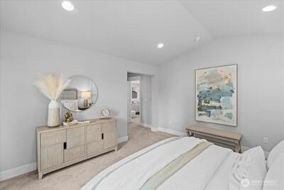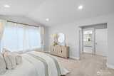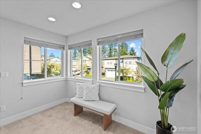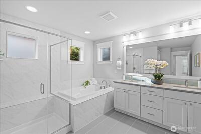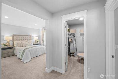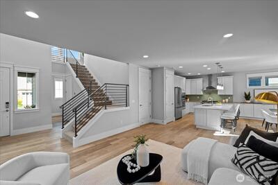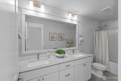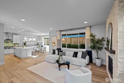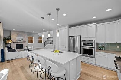 Welcome to Vintners Place, an inviting and thoughtfully designed home nestled in a newer Kirkland community, just minutes from Totem Lake Village, Redmond, and the Eastside tech corridor. Situated on a quiet cul-de-sac, this residence offers a blend of comfort, functionality, and modern finishes. The main level features a great room with 9-foot ceilings and wood flooring, creating an open, connected space ideal for everyday living and entertaining. The kitchen is well-appointed with a large island and stainless steel appliances, including a double oven, gas cooktop, and range hood. Quartz countertops, a full-height tile backsplash, and a pantry complete the space with both style and practicality. Climbing the stairs, enjoy beautiful views of the morning sunrise and Cascade Mountains. A versatile loft provides flexible space for a home office, media area, or additional bonus room. The primary suite is privately situated and features a walk-in closet, an en-suite bath with a soaking tub