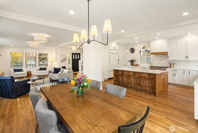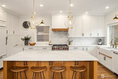 Fully renovated in 2022, this Madrona residence offers a rare blend of luxury, craftsmanship, and everyday livability. The current owners completed a comprehensive, fully permitted transformation, resulting in a home that feels both elevated and effortlessly functional. The chef’s kitchen serves as the heart of the home, showcasing stunning marble slab countertops, an impressive island, paneled Sub-Zero refrigerator, Wolf range, custom cabinetry, and a layout designed for seamless entertaining. Upstairs, a light-filled primary suite features two closets and a spa-inspired bath with heated floors, designer tilework, a walk-in rain shower, and a custom vanity. Three additional bedrooms, stylishly updated baths, and a versatile family room—ideal for movie nights, games, or guests—offer flexible living. Hardwood floors, curated finishes, and bespoke built-ins create a cohesive and refined interior, while major system upgrades—including a heat pump with air conditioning, a new furna