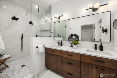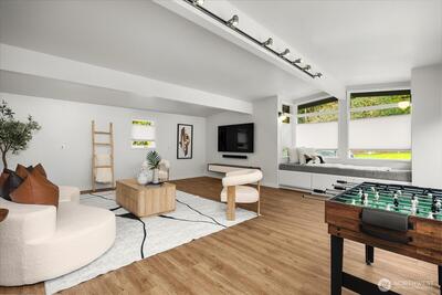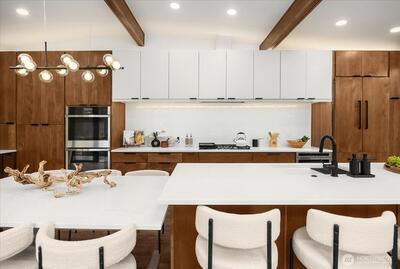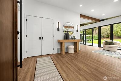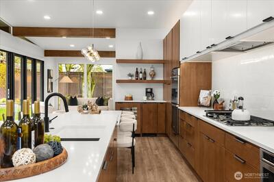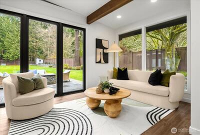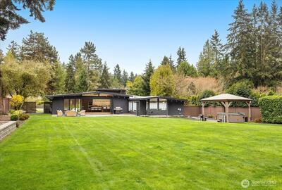 Stunning Innis Arden Rambler situated on gorgeous .71 acre lot. Marvelous floorpan designed with thoughtful finishes and fixtures mixed with incredible functionality. Warm and inviting entry with stylish sitting area opens the home to gorgeous entertainers kitchen. Nanawalls expand the length of the spacious and bright kitchen allowing a seamless extension to the backyard. Primary suite features vaulted ceilings, dreamy walk-in closet and refreshing bathroom with oversized custom walk-in shower. Cuddle up or host the next big game in the family room off the back. Front bedroom offers an excellent option for your home office or den. Fully fenced backyard perfect for endless summer fun - large flat lawn, gas fire, garden beds and covered hot tub! Property extends up wooded hill. Two car garage and plenty of driveway parking. Smart wired. Innis Arden HOA includes access to private community beach, tennis courts, trails and clubhouse. Home is being sold in partnership with Altair Global Re