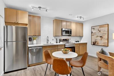 Tucked into the heart of Morgan Junction, this beautifully re-imagined West Seattle condo blends style, function, and unbeatable location. This one-bedroom home has been fully renovated with curated designer finishes, luxury plank flooring, custom cabinetry, and all-new appliances, creating a clean and contemporary aesthetic throughout.The smart, open layout lives surprising large with flow between the living space and tranquil bedroom retreat. Expansive natural light fills the home, complemented by subtle peek-a-boo views of the Sound. Sip on your morning coffee with sunrise vistas from your private deck. Enjoy everyday ease with in-unit washer/dryer hookups, additional building laundry, secure parking, and dedicated storage. Just steps from cafes, shops, restaurants and transit, this home delivers both lifestyle and convenience.The most stylish condo, in an ideal location with a well run HOA! Welcome home!