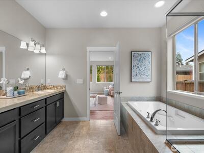Welcome to The Estates at Snoqualmie Valley Trail! Step inside this light-filled home and enjoy open-concept living enhanced by airy 9-foot ceilings throughout. The beautifully appointed chef’s kitchen features a gas range, expansive island, granite countertops, and walk-in pantry—perfect for cooking, gathering, and everyday living. Largest floorplan in The Estates at 3701sf, including two generous primary suites, each with a 5-piece bath and walk-in closet. One suite is conveniently located on the main floor, ideal for one-story or multigenerational living. Upstairs, you’ll find four additional spacious bedrooms, including a second primary suite, plus a versatile bonus loft. Relax in the low-maintenance backyard complete with an outdoor gas fireplace, patio, Japanese maples, and garden space. An oversized 3-car garage provides ample room for vehicles, storage, and hobbies. Thoughtful upgrades include new luxury vinyl plank flooring throughout, A/C, tankless water heater, sprink