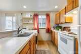 Discover this charming stand-alone townhome featuring single level living with 3 spacious bedrooms and 2 nicely refreshed baths. Offering a roomy, open concept living area plus dining room with gleaming wood flooring. The kitchen is equipped with an expansive breakfast bar, lovely wood cabinetry, and nice pantry space. The primary bedroom includes an attached bath, perfectly complementary to the nicely updated baths with laminate flooring & tile accents. Move-in ready, this well-maintained home includes all appliances, a newer front-load washer & dryer, and newer hot water tank. Energy-efficient convection heating accents the HVAC system & adds coziness. Enjoy outdoor relaxation & summer BBQ’s on the balcony and a spacious 2-car garage ensures practical storage. Nestled in a securely gated community, you'll enjoy peace of mind. Low community dues include yard maintenance & sprinkler systems for watering, so you can just move in and enjoy. With a fully fenced yard for pets & play, thi