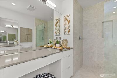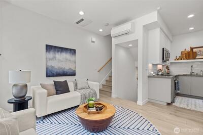 Tucked away on a quiet street, this elegant modern townhouse in Capitol Hill has it all. Large windows flood the home with natural light, highlighting a sleek kitchen with high-end appliances and quartz countertops. The top-floor primary suite features a spacious closet with custom built-ins, a walk-in shower, and a seated vanity for easy morning routines. Enjoy a rooftop deck with stunning city views, perfect for relaxing or entertaining. With a walk score of 90, you're close to parks, cafes, transit, and shops. Energy-efficient mini-split heating and cooling ensure comfort year-round. Welcome home!