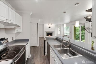 Welcome home! This spacious 2-bedroom condo offers large closets, a true dining room for gatherings and a cozy wood-burning fireplace that makes every evening feel inviting. Enjoy a peaceful view of the trees from your balcony, complete with extra storage. Community amenities include an outdoor pool, workout room, game room, playground, garden space and secured RV parking. Whether starting out or downsizing, this home is a must-see! Virtual staging to help you imagine the possibilities. Live here and love the commute—Seattle is just a quick ride away on the new link/light rail, with shopping and highways close by too. Schedule a tour today!