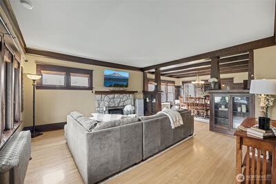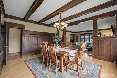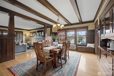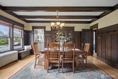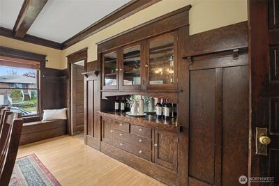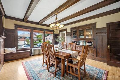 Where timeless craftsmanship meets modern comfort, this beautifully preserved Craftsman is filled with warmth, character, and thoughtful updates throughout. Offering four bedrooms, three bathrooms, and two additional flex rooms ideal for an office, play room or extra bedroom, the layout is as versatile as it is inviting. Original hardwood floors, stunning built in cabinetry, and classic bench seating showcase the home’s enduring charm, while the welcoming front porch is the perfect place to enjoy your morning coffee or unwind at the end of the day. The spacious design includes a primary suite with its own bathroom and a custom closet with built ins. A second bedroom and bathroom are conveniently located on the main level, while upstairs features two additional bedrooms and another bathroom, providing flexibility for a variety of living arrangements. The fully remodeled kitchen blends style and function with soft close cabinetry, a gas cooktop, and plumbing ready for your coffee stat