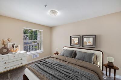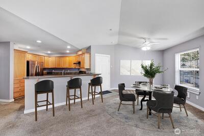 Beautifully maintained 3-bedroom, 2-bath condo in the highly desirable Redmond Ridge community! This spacious ~1,340 sq ft home offers an open-concept layout with abundant natural light, creating a warm and inviting living space. The updated kitchen features elegant quartz countertops, brand-new stainless-steel appliances, ample cabinetry, and a convenient breakfast bar—flowing seamlessly into the dining and living areas, perfect for everyday living and entertaining. With fresh interior paint this home feels bright, clean, and move-in ready. The generous primary suite includes a private bath and ample closet space, while two additional bedrooms provide flexibility for guests, a home office, or hobbies. Enjoy peaceful outdoor moments on the covered deck/patio, ideal for year-round relaxation. Additional highlights include in-unit laundry, ample storage, and rare parking convenience with a private 1-car garage plus an additional uncovered parking space. The HOA offers excellent flexibi