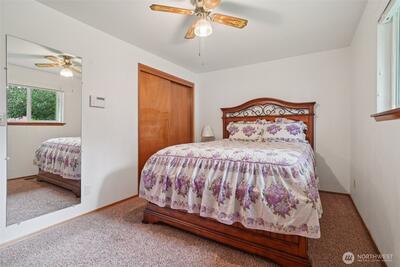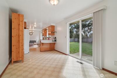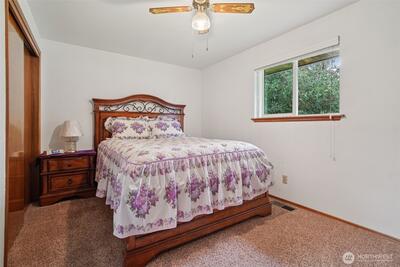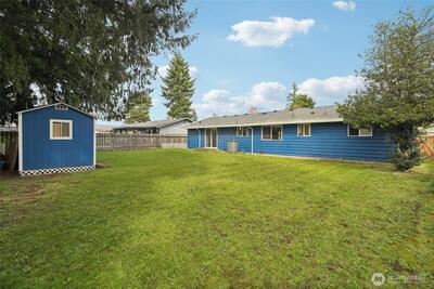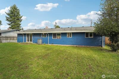 Welcome to this charming 3-bedroom, 2-bath home offering 1,270 square feet of comfortable living space, perfectly situated on a generous 9,600 square foot lot. This property presents a wonderful opportunity to personalize and make it your own, with hardwood floors waiting to be uncovered beneath the existing carpet—adding warmth and character throughout. Enjoy stunning views of Mt. Rainier, creating a picturesque backdrop for daily living. Recent updates provide added value and peace of mind, including a new roof (2019), updated electrical panel, new attic and crawl space insulation, and a brand-new water heater (2026). Central A/C ensures year-round comfort. Step outside to a large, fully fenced backyard offering privacy and plenty of space for outdoor activities, pets, gardening, or future enhancements. The spacious lot provides endless possibilities to expand or create your ideal outdoor retreat. With no HOA, you’ll appreciate the flexibility and freedom to truly make this home