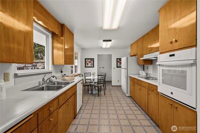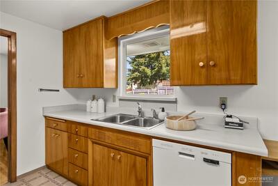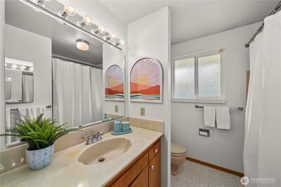 Rare opportunity to own a pristine, authentically preserved mid-century modern home directly across from scenic Wapato Park. This architectural gem showcases iconic original details, including the signature three-diamond light front door and true-to-era character throughout—an unspoiled example of classic 1960s design. Original hardwood floors, clean lines, and a bright, sun-filled layout highlight the home’s timeless style. Offering 4 bedrooms and 3 bathrooms, this two-story home with a full basement blends vintage charm with flexible living. The main level includes three bedrooms, while the finished basement adds a private fourth bedroom, additional bath with walk-in tub, expansive rec room, and separate entry—ideal for guests, multi-generational living, or a home office. Ample parking includes a 2-car garage, detached garage/shop, and covered carport, plus alley access for RV parking or projects. Freshly painted and meticulously maintained, this move-in ready home also feature