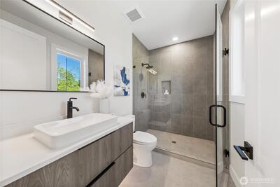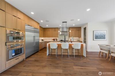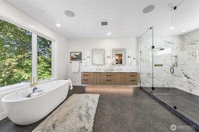 Welcome to this exceptional custom Northwest Contemporary home located in sought-after South Houghton! This gorgeous home spans three levels, including a full daylight basement, and blends modern design with refined comfort. The spacious chef’s kitchen anchors the main level with high-end Thermador appliances, ample storage and a large island overlooking the living areas... perfect for entertaining and daily living alike! Retreat to a spa-like primary suite featuring a five-piece bath, premium finishes, and an expansive walk-in closet. Each bedroom offers a private en-suite bath with heated floors and walk-in closets, providing comfort and privacy throughout. Enjoy the convenience of two laundry rooms, a 3-car garage with high-performance floor coating, and beautifully curated landscaping complete with irrigation, fencing, and lighting. All within the highly regarded Lake Washington School District. You don't want to miss this stunning home!