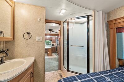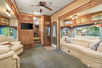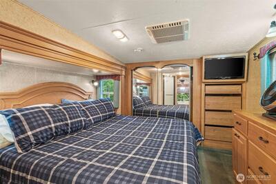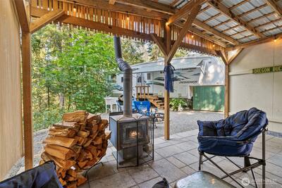 Tucked away beneath the evergreens, this private 1/4-acre retreat is the perfect blend of relaxation & recreation. The property includes a 2007 Jayco Designer camper trailer & studio outbuilding w/ new floors making it ideal for guests or a creative space. Enjoy outdoor living year-round w/ a covered hangout area & a cozy wood-burning stove + fire pit for gathering. The quiet setting offers the ultimate escape yet comes w/ community amenities including a private pool, private beach & boat launch for endless activities. This property is a unique opportunity for those seeking peace, adventure & a place to make memories. Both power, water & holding tank are on site, making this property perfect for the occasional camper or year-round resident.