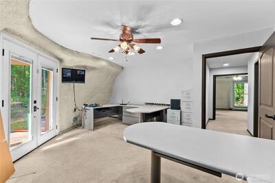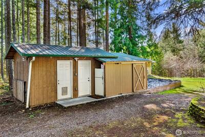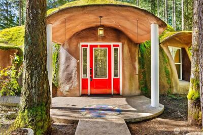 Discover the original classic Northwest "Dome Home" situated on 1.7 acres outside the city limits of the beautiful town of Yelm. Set within a park-like Landscape featuring lush garden spaces and mature trees, this uniquely designed and constructed residence was built by Bob Hendricks, whose legendary dome houses and shelters are icons throughout the area. Because this home served as the builder's personal residence, the quality of craftsmanship truly shows. The interior features 2 floors, including 3 bedrooms, plus a downstairs office that could easily serve as a 4th bedroom. Both the house and property have been meticulously maintained and updated over the years; the kitchen boasts updated cabinets and appliances, a brand-new boiler system for the hydronic heating, and a new water heater. Built for the ultimate durability, the fortified, concrete dome home structure was built to withstand seismic stresses, extreme temperatures, and all manner of weather. The property also includes